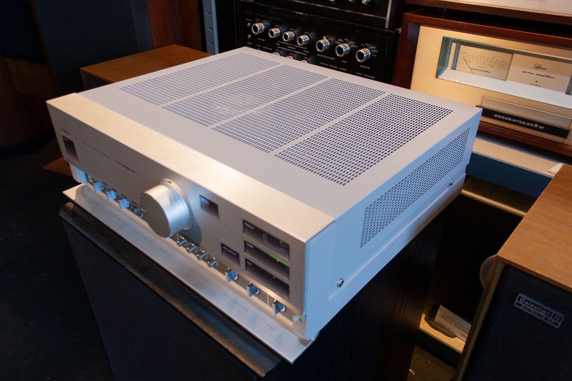 Magnifique ampli intégré du début des années 80. Du haut de gamme, avec un très bon préamplificateur phono acceptant les cellules à bobines mobiles (MC).