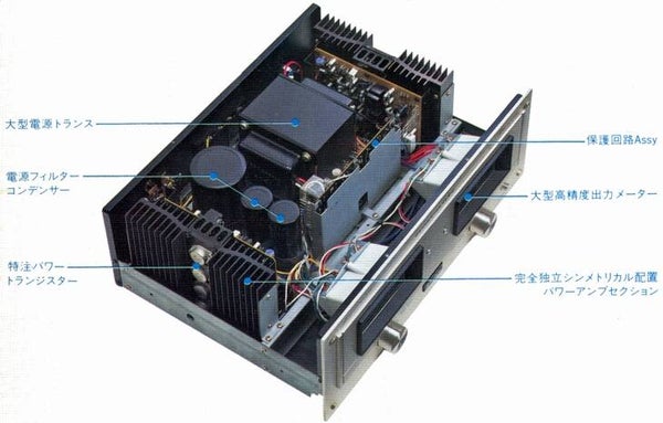 Axé sur l'élimination de la distorsion d'intermodulation transitoire (TIM), cet amplificateur de puissance stéréo s'inspire de la tradition Marantz et intègre les dernières technologies. Il présente une configuration symétrique entièrement indépendante, à l'instar du modèle 250. Il est équipé d'un circuit Darlington OCL parallèle push-pull à trois étages, entièrement complémentaire, avec une configuration CC. Il est également conçu pour résister à la charge et offrir une linéarité de puissance supérieure grâce à un élément à faible bruit spécialement conçu. De plus, un circuit d'amplification différentielle cascode bootstrap utilisant un double FET à faible bruit de spécification audio est adopté au premier étage afin de minimiser les problèmes de dérive thermique et temporelle de l'amplificateur CC et d'obtenir un courant continu stable. L'alimentation est assurée par un transformateur de grande capacité et un condensateur Fx2 de 18 800 μF.