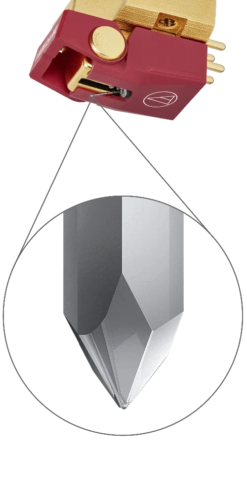 Les trois modèles haut de gamme de la série VMx (AT-VM760x, AT-VM750x et AT-VM745x) sont dotés d’un cantilever en bore massif. Naturellement léger et rigide, le bore transmet les signaux depuis le sillon du disque plus rapidement qu’un cantilever en aluminium. Le résultat est une reproduction sonore plus précise, notamment lors des variations de dynamique des passages musicaux. Le corps en aluminium moulé réduit quant à lui les vibrations et résonances.