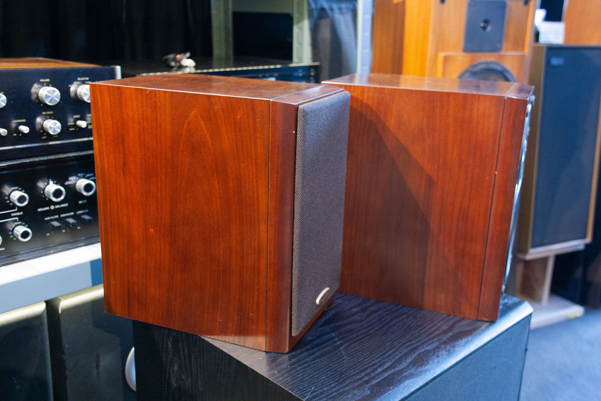 Système de haut-parleurs de la série 102 avec finition en bois réel.